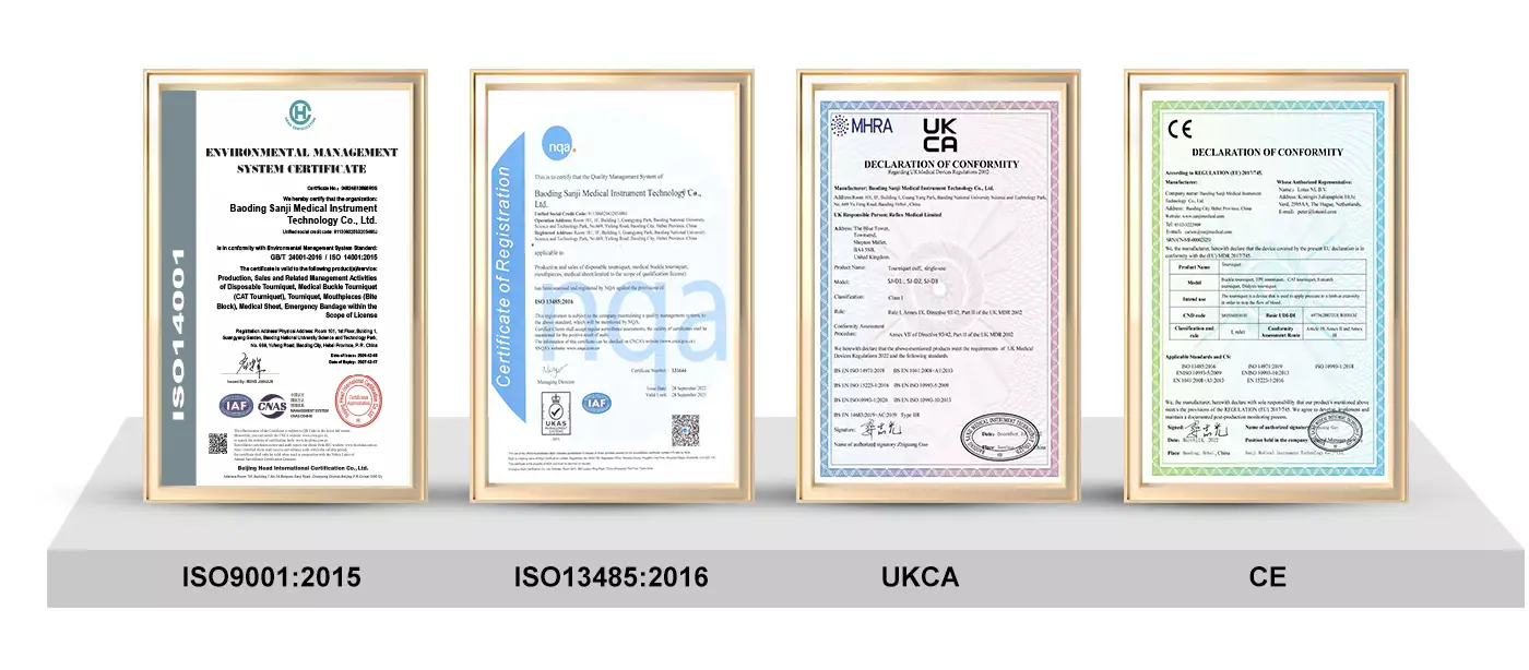 لقد كنا متخصصين في الأبحاث المتقدمة في مجال تصنيع Tourniquet. من أجل تحسين جودة ومستوى منتجاتنا ، قمنا بتطوير جميع جوانب البطولات وحصلنا على العديد من شهادات براءات الاختراع الوطنية.